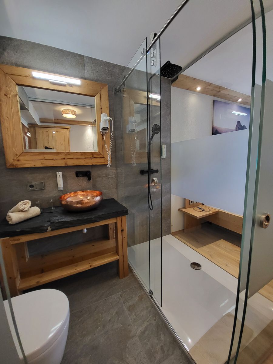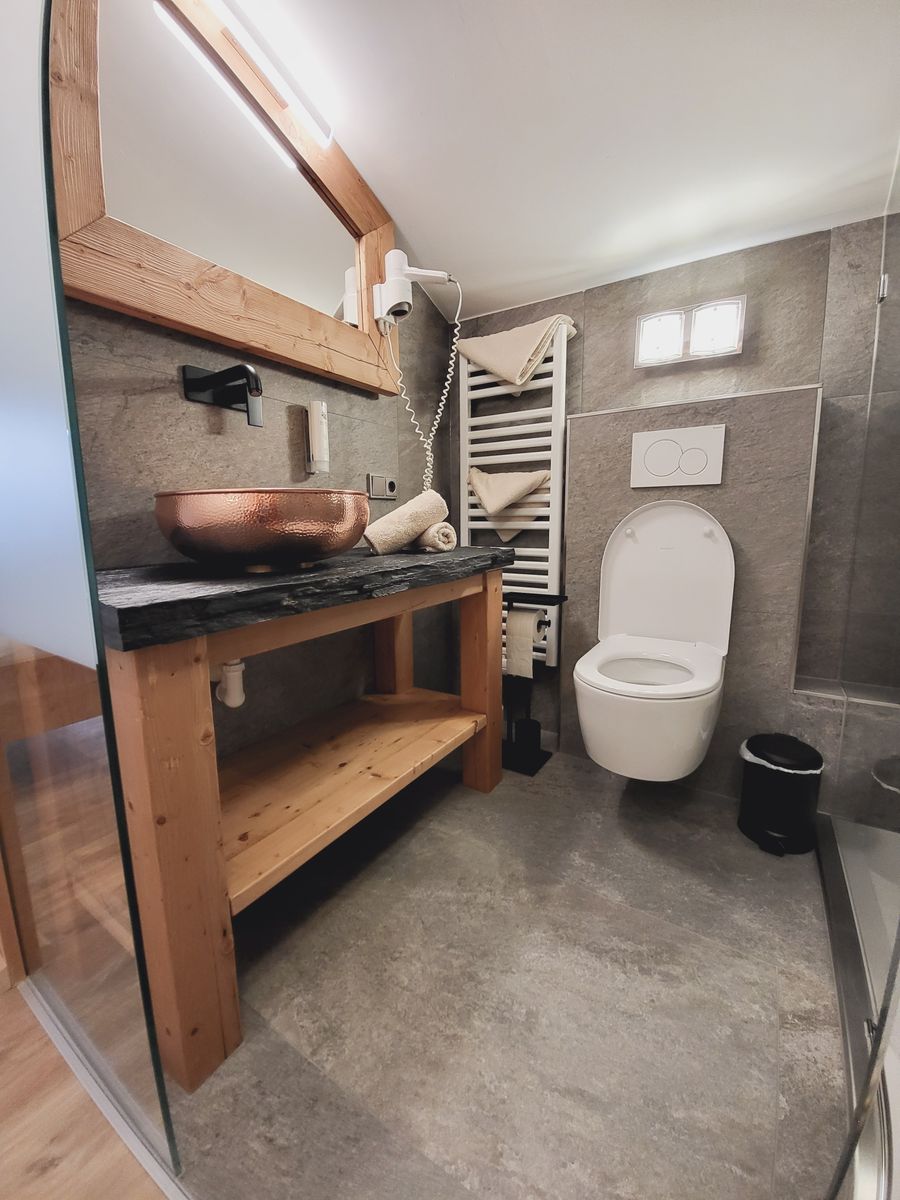 Zusammen mit lokalen Handwerkern entstanden helle, behagliche Räume aus heimischem Zirben- und Fichtenholz, robustem Loden, Leder und kuscheligen Textilien – authentisch, gemütlich und zeitgemäß.